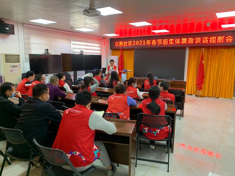 讯:2021年2月7日,立新社区召开2021年春节前集体廉政谈话提醒会。