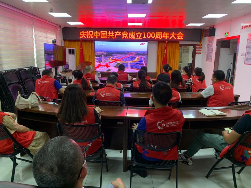 讯:2021年7月1日上午,立新社区组织工作人员在党群服务中心会议室观看庆祝中国共产党成立100周年大会直播。