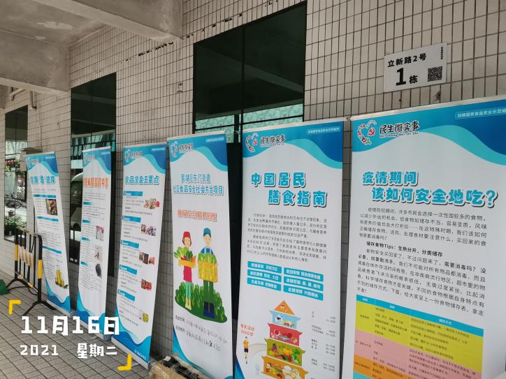 罗湖家园网讯:为提高社区居民食品安全意识、增长膳食营养知识,营造浓厚的食品安全社会共治氛围,2021年11月10日下午,东门街道办联合立新社区工作站、立新党群服务中心开展东门街道社区食品安全社会共治建设民生微实事项目——“食品安全服务到家”活动。