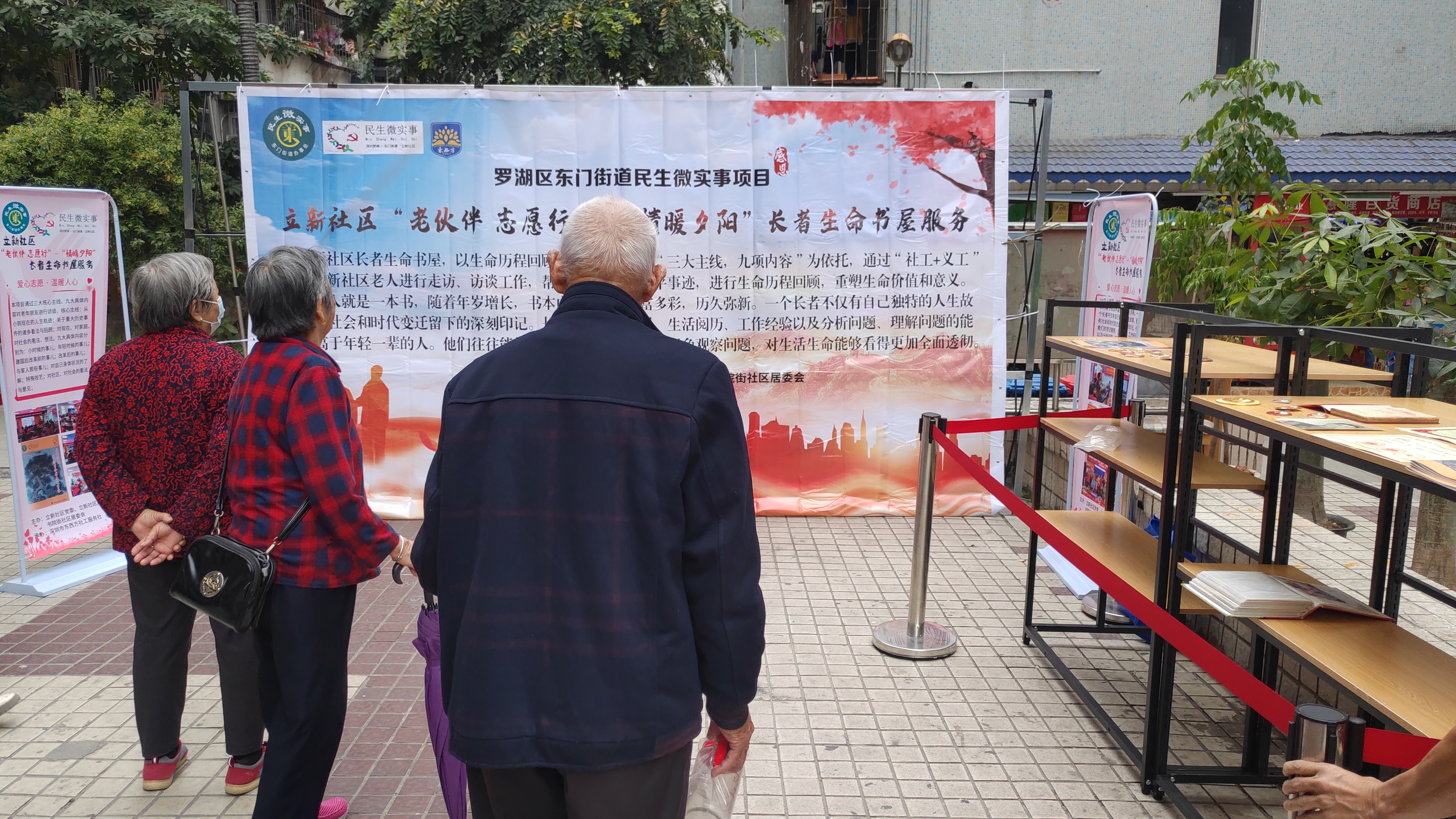 罗湖家园网讯:2021年11月19日下午,由立新社区党委、立新社区居委会、书院街社区居委会主办,深圳市东西方社工服务社承办的2021年民生微实事项目:立新社区“老伙伴 志愿行”-“情暖夕阳”长者生命书屋项目的项目成果展示会,已经成功开展。