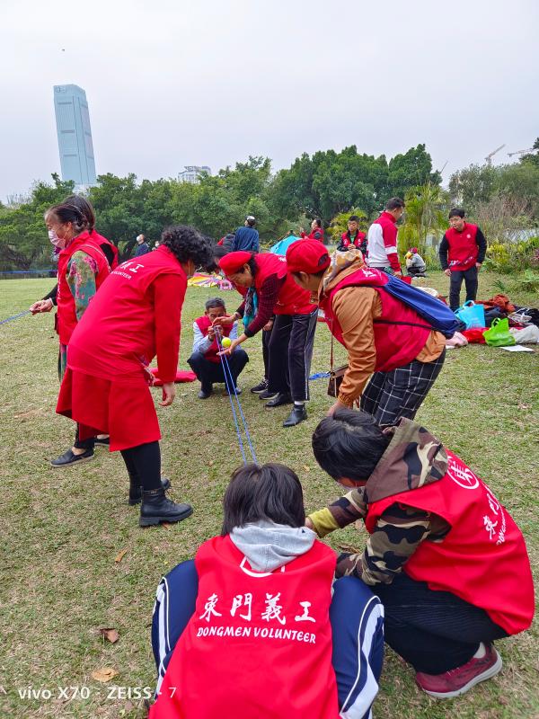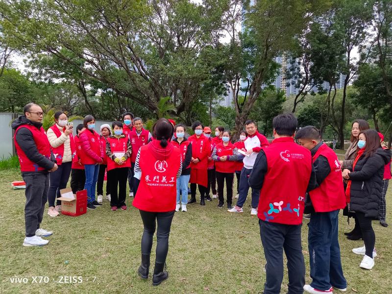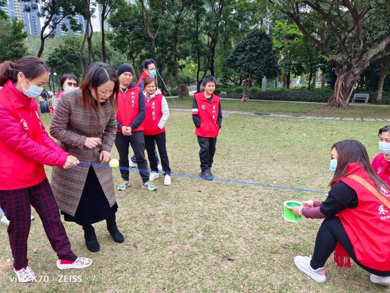 来到活动点,义工们精神抖擞、跃跃欲试接下来的活动,经过社工对游戏规则的介绍,各组开始进行比拼。