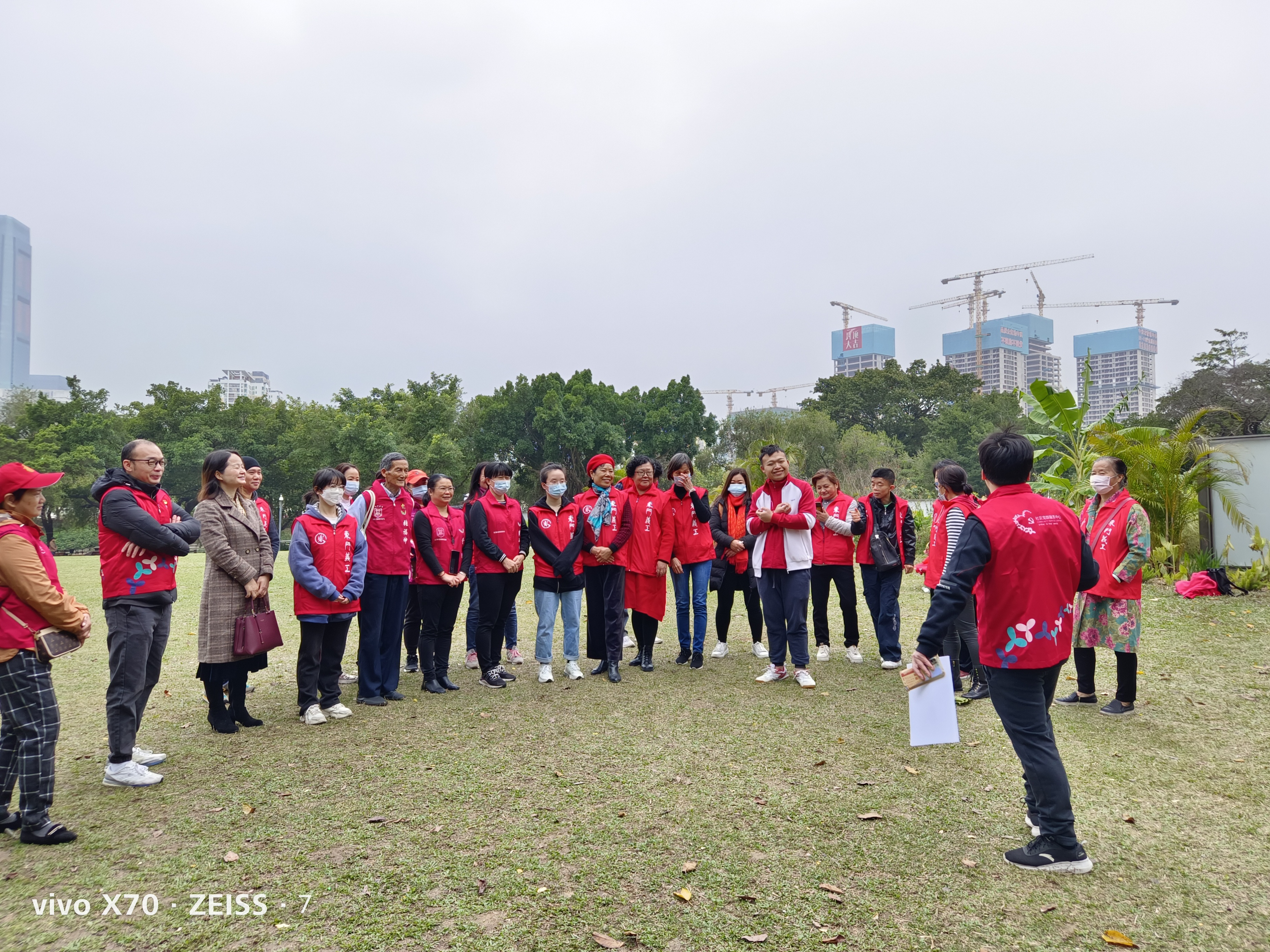 当日空气寒冷,也阻挡不了义工们的热情,早早来到洪湖公园大门集合。在社工的带领下,向活动地出发。 沿路上,义工们有说有笑,气氛融洽,遇到网红打卡点,也互相帮对方拍照,晒晒美照。通过轻松交流,增进浓厚感情。