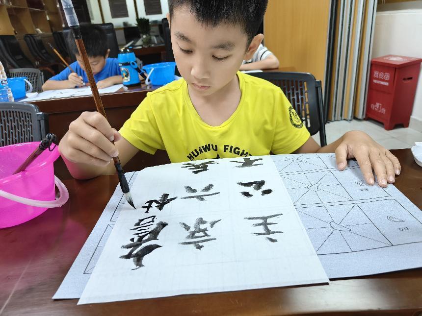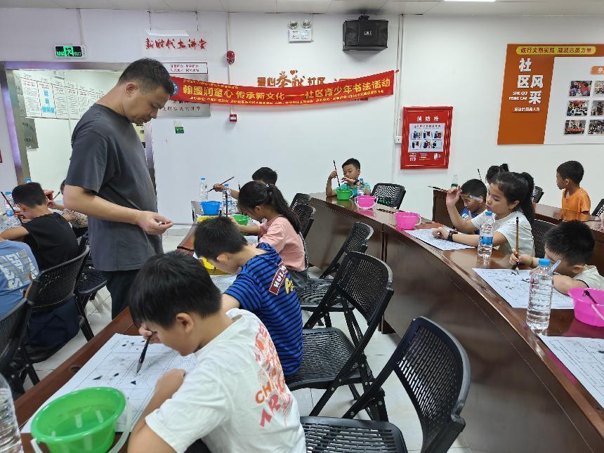 东门街道立新社区弘扬中华传统文化、陶冶青少年书法情操,翰墨润童心 传承新文化——社区青少年书法活动打造孩子扎实基础