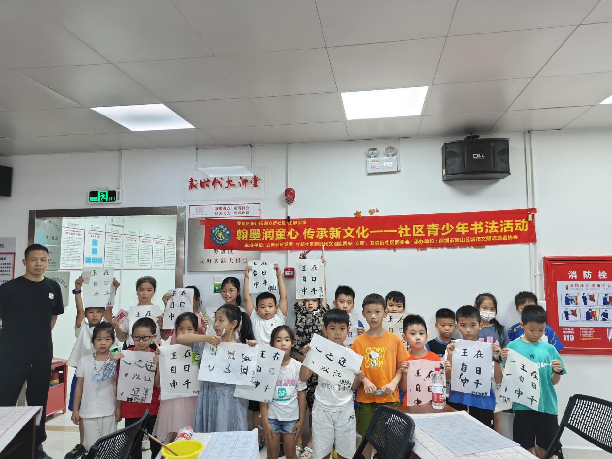 东门街道立新社区弘扬中华传统文化、陶冶青少年书法情操,翰墨润童心 传承新文化——社区青少年书法活动激发学习热情