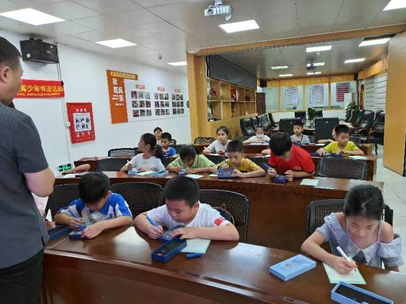 罗湖家园网讯:2023年8月11日周五,立新社区民生微实事的青少年书法活动第八场在社区内正常开展。本次活动为全部活动的中间节点,基于此将在本次活动中对孩子们进行基本的小测试检验,让他们在一定的时间内使用硬笔书写规定内容。活动中,孩子们抓握起与毛笔不同的硬笔,惊讶地发现他们手腕对笔的控制比起以往有充足的进步。本次活动中主办方提供的物资——包括硬笔套装全部分发给了参与者。