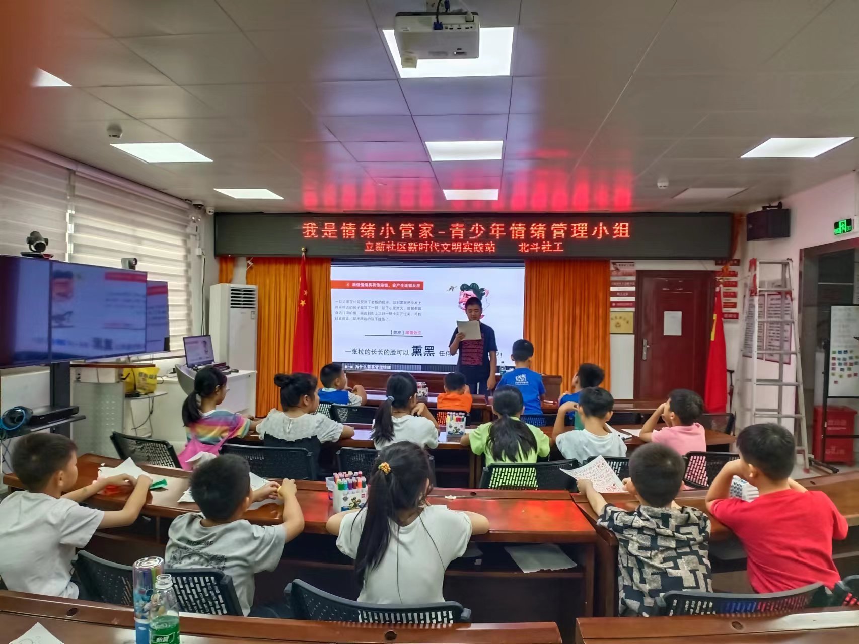 罗湖家园网讯:青少年时期是情绪相对不稳定的一个阶段,在学习和生活上遇到不顺心的事情容易产生负面情绪,长时间沉溺于负面情绪不利于青少年健康成长。为更好地帮助青少年正确认识情绪,并妥善处理自己的情绪,8月21日-8月25日,东门街道立新社区党群服务中心北斗社工开展了我是情绪小管家-青少年情绪管理小组。活动吸引了十多名儿童参加。