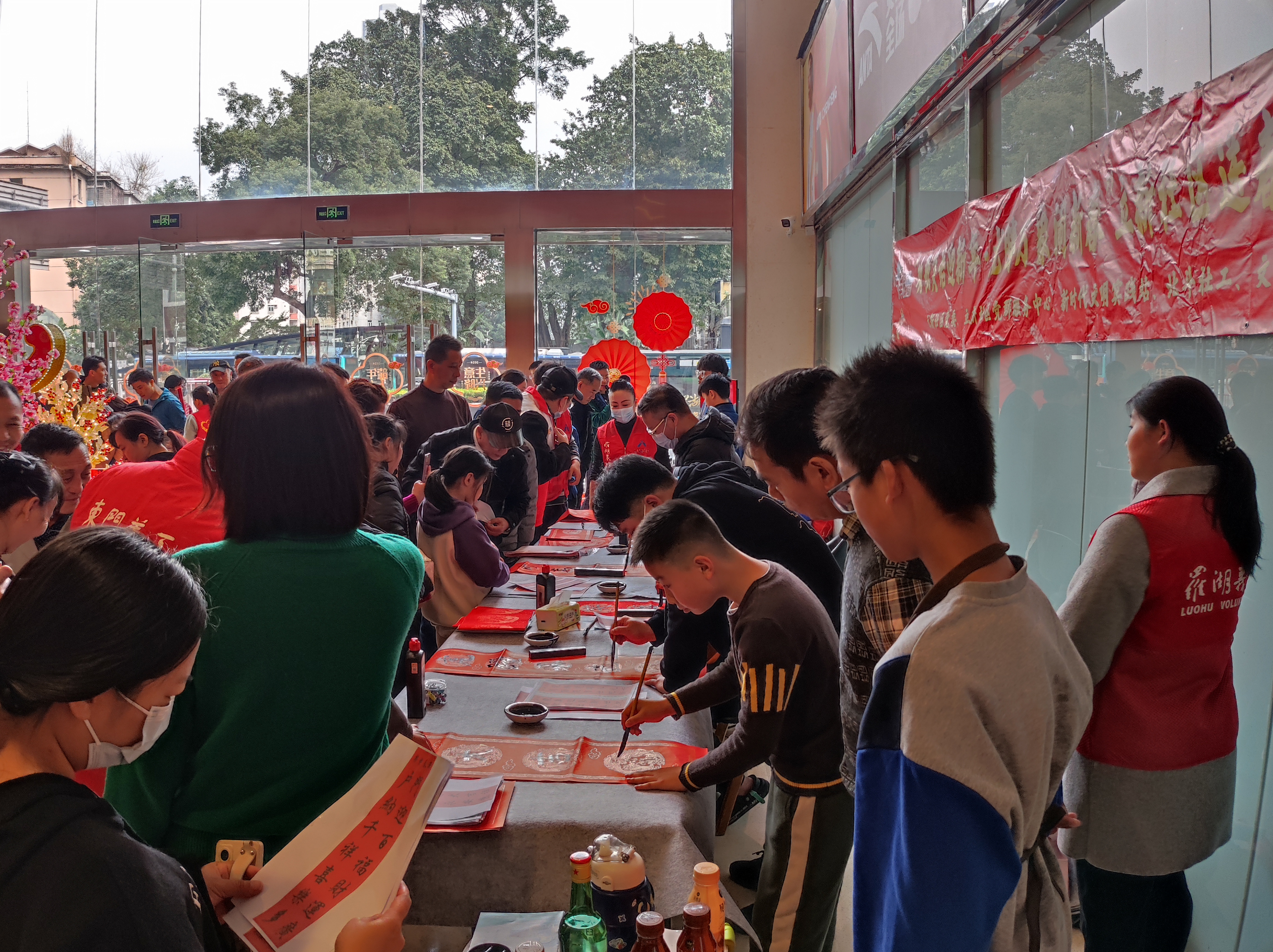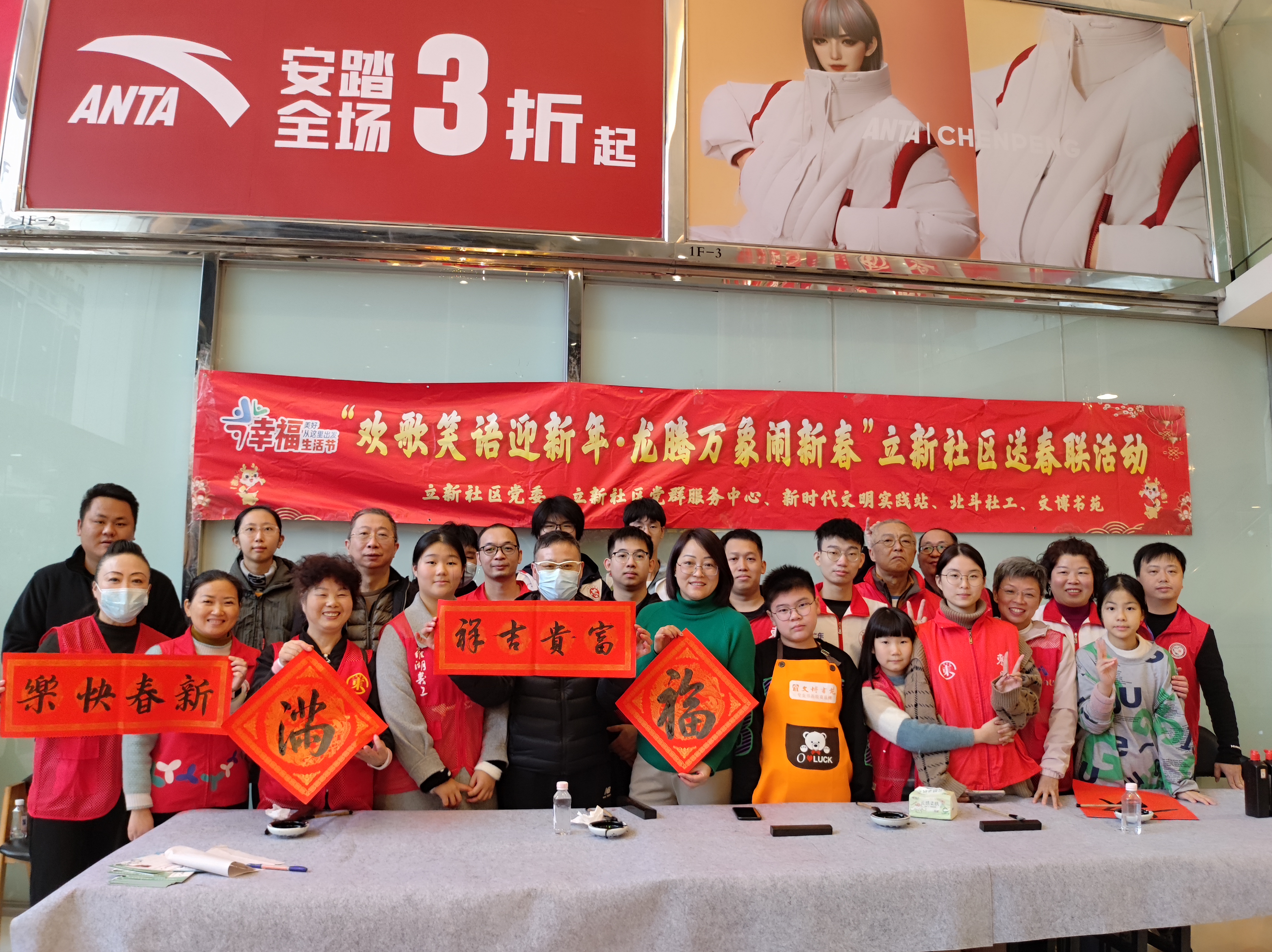 罗湖家园网讯:为营造浓厚的春节氛围,弘扬中华优秀传统文化,让市民群众在深圳度过一个有温度、有年味的新春佳节,2024年1月29日下午,立新社区党委、立新社区新时代文明实践站、北斗社工和文博书苑在南海中心开展了龙年春联,贺新春一联心送祝福,福运共同迎写春联活动,将节日的祝福提前送到居民的身边。