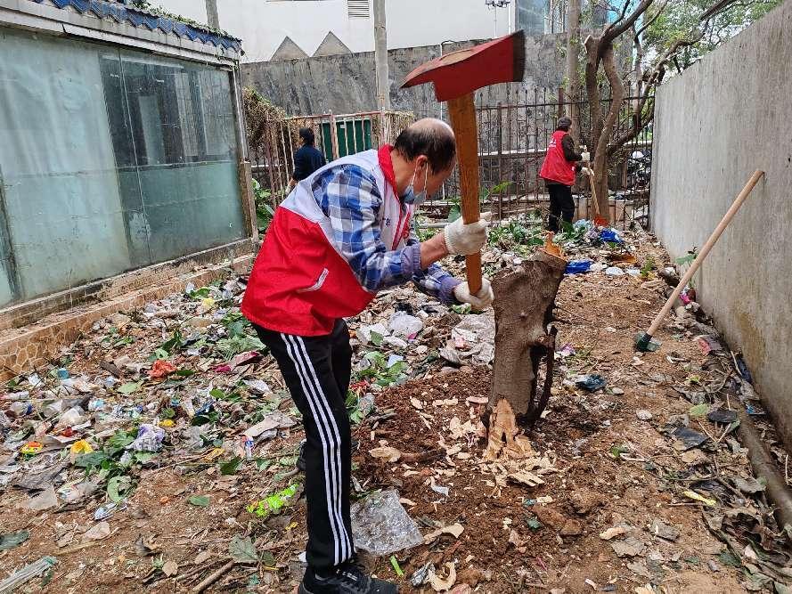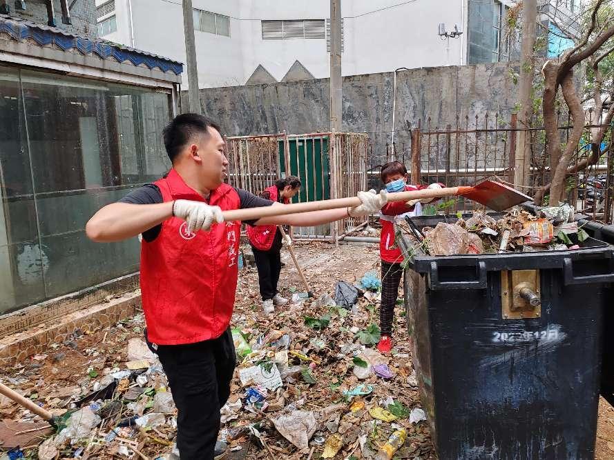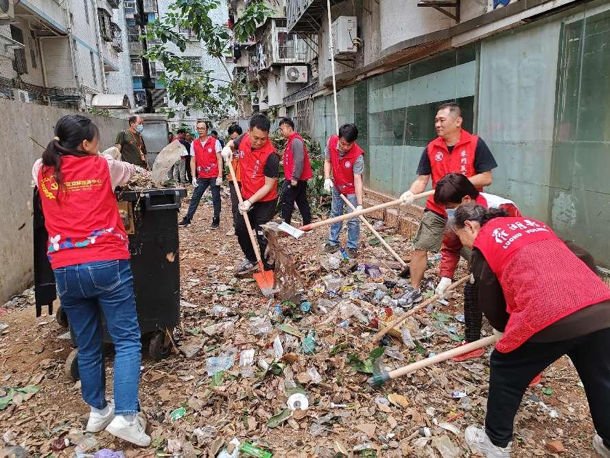 活动邀请了党员志愿者、物业、共建单位和社会组织以及居民共同参与环境卫生专项清理行动。对立新花园2栋设施老旧、杂草丛生的卫生死角进行了清理,并对清理出的垃圾进行了现场分类指导。