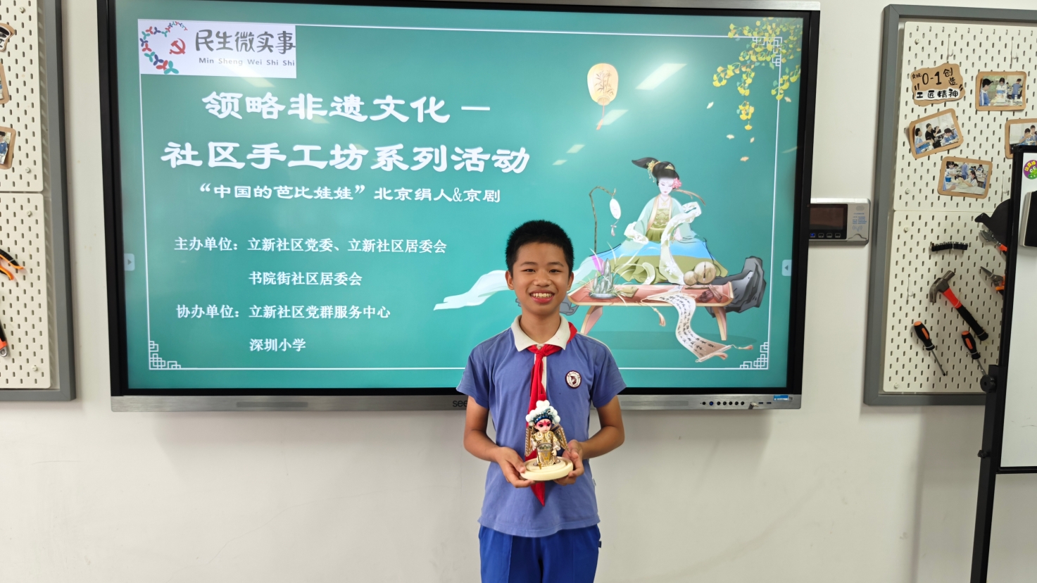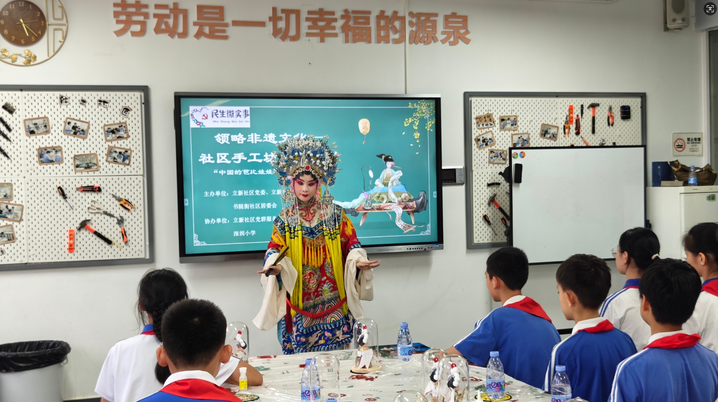 罗湖家园网讯:为深化青少年对非遗文化的认知,6 月 16 日,由立新社区党委、立新社区居委会、书院街社区居委会主办,立新社区党群服务中心、深圳小学协办,深圳市罗湖区旭阳政心社会公益促进中心承办的 “领略非遗文化 —— 社区手工坊” 系列活动第二场 “中国的芭比娃娃” 北京绢人 & 京剧主题活动,在深圳小学精彩开展。
