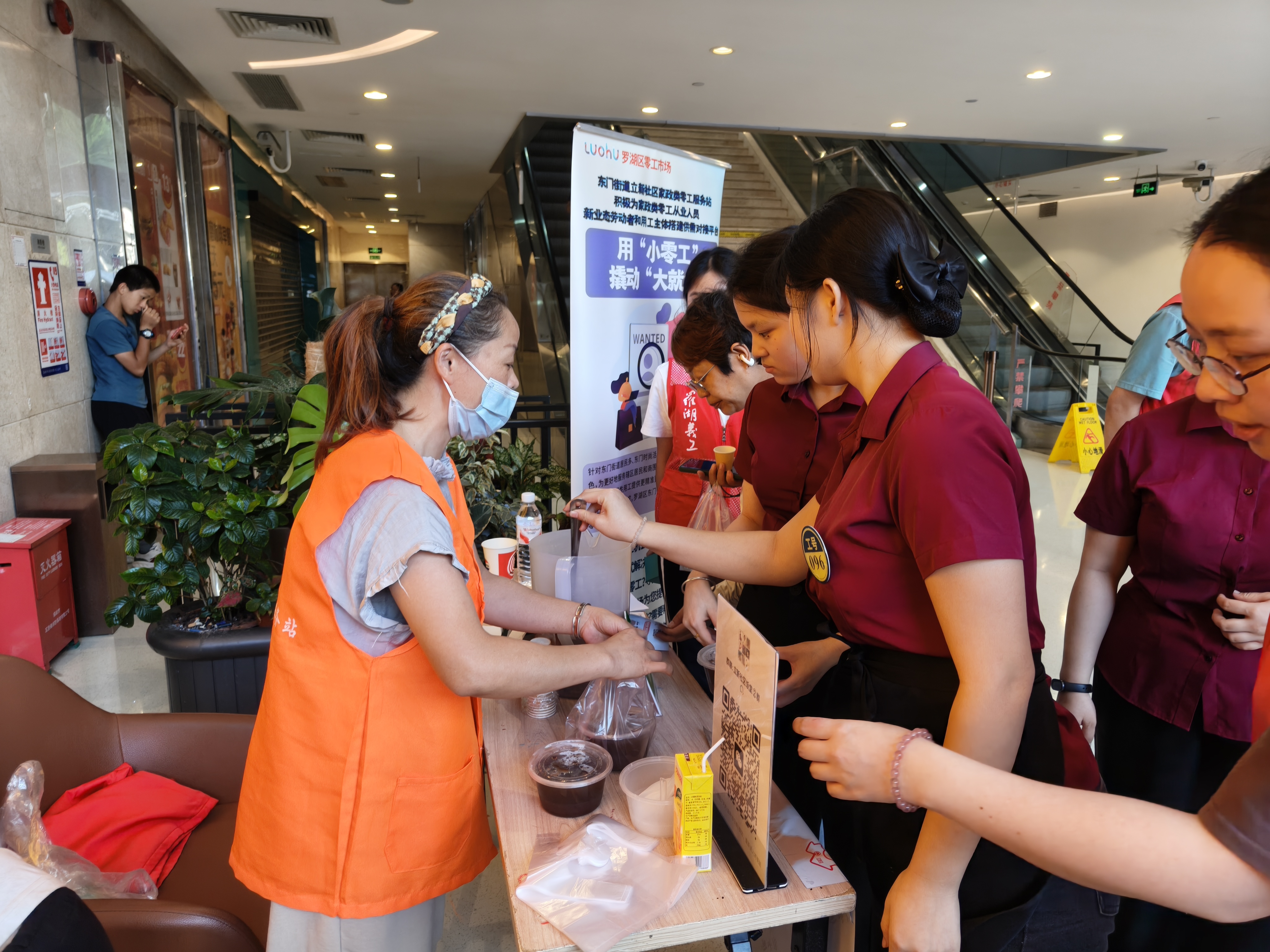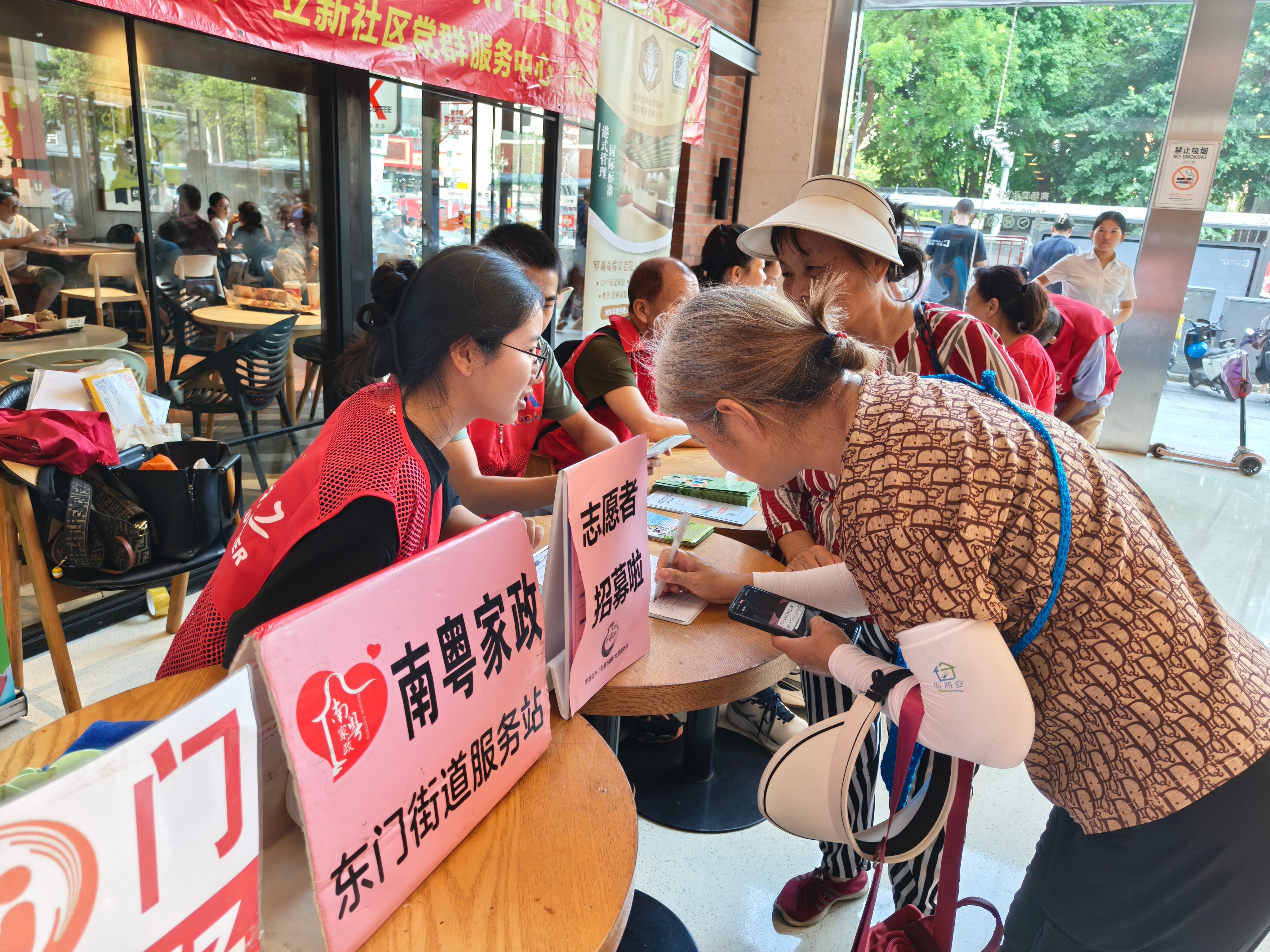 活动联合东门街道南粤家政基层服务站、东门零工市场、东门街道石榴籽志愿服务队、东门社康中心、立新社区长者服务站、华为授权体验店(东门中路)、中国人寿汇隆支公司、正夫口腔、佰视佳眼科医院、罗湖欣荣深尚安养服务有限公司等资源方,为居民提供、政策法律宣传、就业招聘推荐、健康义诊服务、手机清洁贴膜服务、手工DIY活动、理发、磨刀、洗锅、消暑爱心糖水供应等多项便民服务。