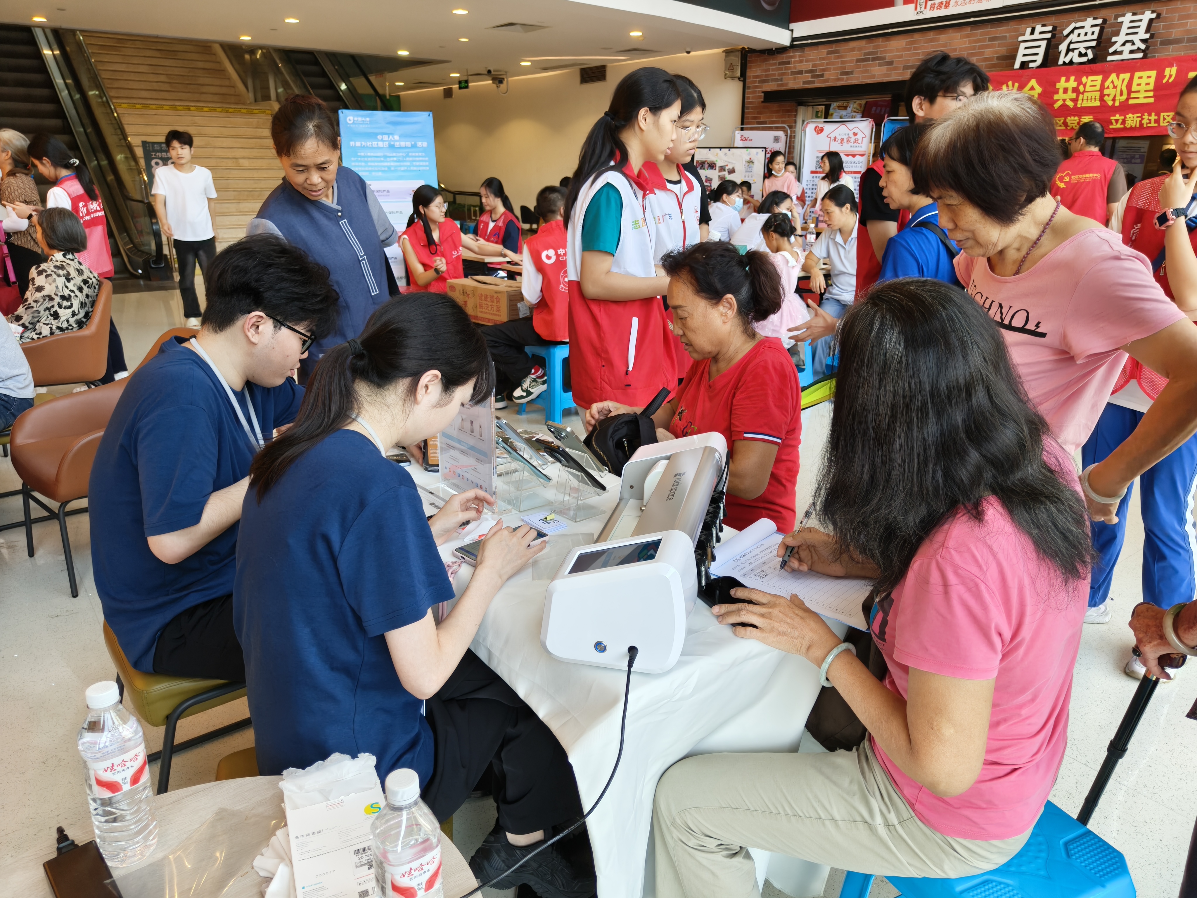 健康义诊服务区,医护人员为居民进行血压、血糖测量等便民检查。服务区内还设有手机便民服务点,为居民的手机进行清洁和贴膜,让手机焕然一新。