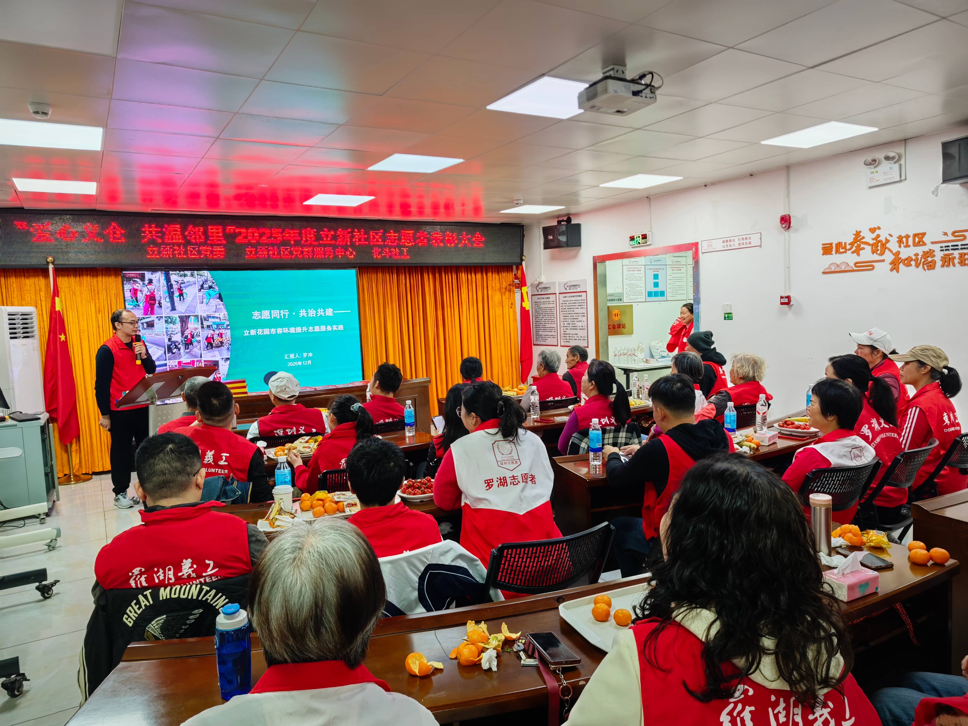 罗湖家园网讯:为进一步弘扬“奉献、友爱、互助、进步”的志愿服务精神,在东门街道立新社区党委的支持下,立新社区党群服务中心的北斗社工在2025年12月28日上午,开展“爱心义仓 共温邻里”2025年度立新社区志愿者表彰大会。活动旨在表彰在社区服务中表现突出的志愿者,感谢他们为社区做出的无私奉献。
