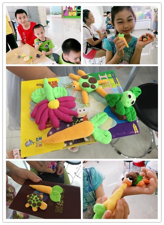 社工在活动中分别通过热身游戏“击鼓传花”让组员相互认识。在热身游戏后,社工引导组员手工创作。首先社工先介绍粘土的材料、工具,接着一步一步教导小朋友们做一个胡萝卜,小朋友们都边学习边动手做了起来!然后,社工接着引导小朋友们做乌龟。小朋友们都渐渐熟悉了做法,一边对着样品自己就能做出来。最后小朋友们都在各自发挥想象力来创做作品!你们瞧!孩子们学得多认真!多开心!制作的的作品多么逼真啊!