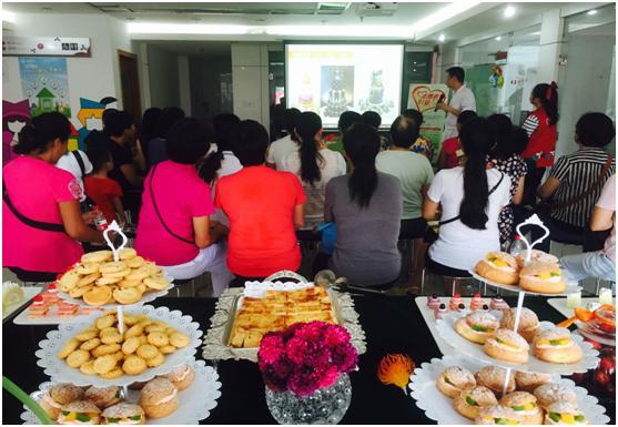 秋季美食层出不穷,继东门社区美食节,为丰富社区妇女群体业余生活,促进社区和谐,在东门街道妇联在支持下,2016年9月6日下午3点整,东门社区党群服务中心顺利开展了“东门社区·爱心烘焙进社区”活动。本次活动由东门街道妇联主办,由东门社区党群服务中心以及深圳市森派西点培训学校协办开展,并得到了社区居民的支持。