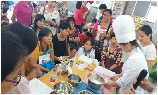 本次活动邀请了东门街道妇联王惠主席对活动致辞,并特邀深圳市森派西点培训学校的罗副校长作为主讲。现场讲解西点的分类,如慕斯甜点类、蛋糕类、派类、塔类等进行展示以及区分。并对烘焙的各种食材进行介绍,如酵母的区分以及效果、动植物奶油区分以及价值、烘焙中工具的选择以及配备等,并有居民提出在日常生活遇到烘焙问题得到了详细的分析以及解答。