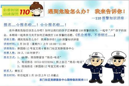【活动招募通知】遇到危险怎么办? 我来告诉你!—110报警知识讲座