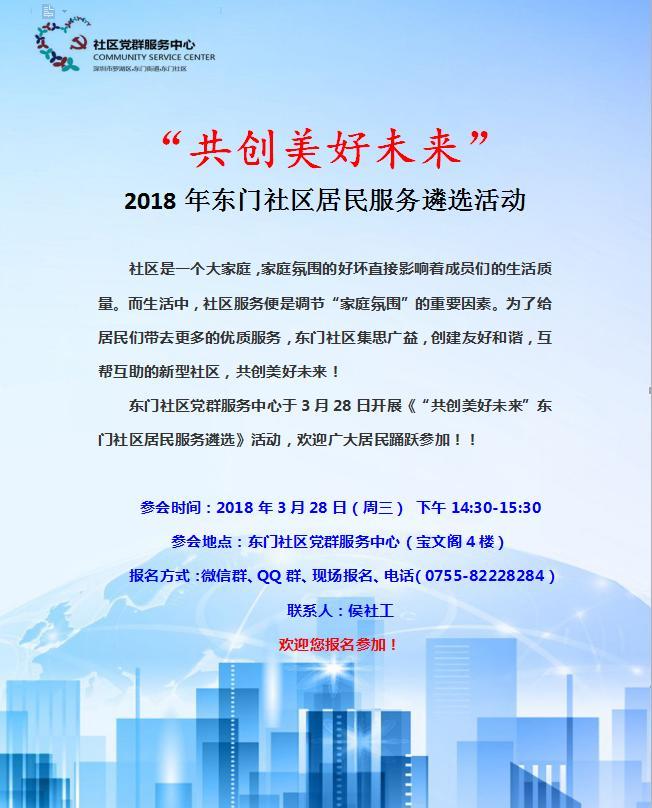 【预告】“共创美好未来”2018年东门社区居民服务遴选活动