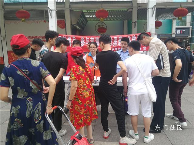 2019年6月17日下午,东门社区联合东门警务室在金世界广场开展了禁毒、扫黑除恶宣传活动。