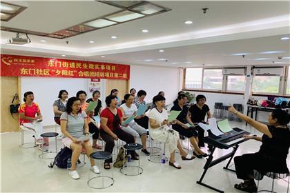 为了丰富东门社区长者的业余文化生活,提高艺术修养,培养科学的发声方法和演唱技巧,为社区创造一个健康、快乐、和谐的活动环境,民生微实事项目“东门社区‘夕阳红’合唱团培训项目第二期”第六节课于6月30日上午10点钟悠扬开唱。