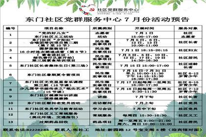 【预告】东门社区党群服务中心7月份活动预告