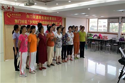 2019年7月12日上午10点,我们迎来了民生微实事项目“东门社区‘夕阳红’合唱团培训项目第二期”第九节课程。