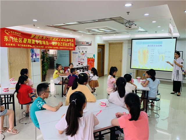 民生微实事“东门社区暑期夏令营项目”爱自己系列第二节“护牙讲座”于7月16日下午2点欢乐开课!义工讲师为社区青少年讲解有关预防牙齿的相关知识。 在课堂上义工讲师讲解从出生到长大,乳牙变换到恒牙的过程,形成龋齿的原因。如何预防龋齿,以及正确刷牙的实操环节,向参加本次讲座的20名社区青少年普及、巩固有关牙齿的相关知识。 希望同学们通过参加本次保护牙齿的讲座,能够将所学很好的应用到实践。