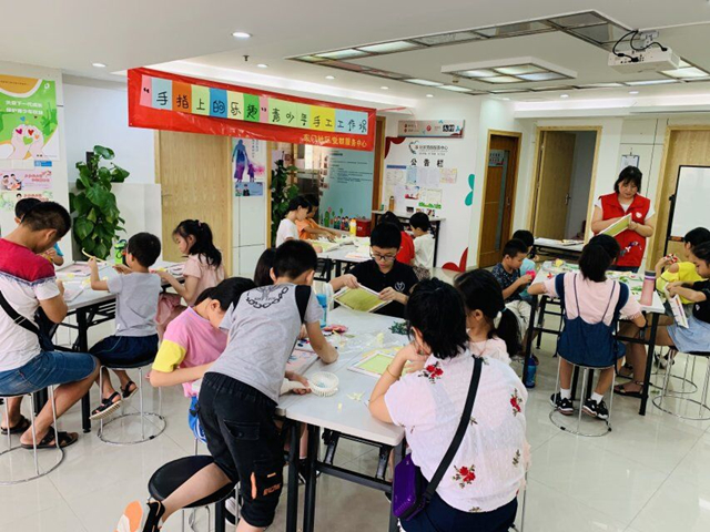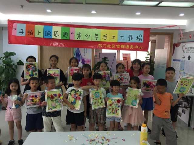 罗湖家园网讯:今天下午2点钟,社区小朋友准时来到东门社区党群服务中心参加手工工作坊,本节工作坊主要是制作“纽扣花壁画”。