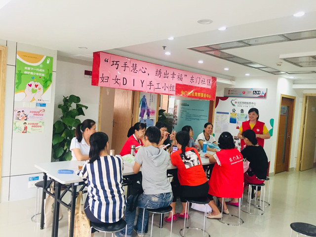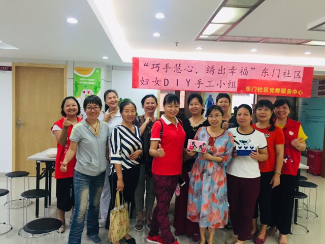 罗湖家园网讯:为提高社区妇女手工制作能力,丰富她们的业余生活,多学到一门手艺,2019年10月28日下午,“巧手慧心,绣出幸福”东门社区妇女DIY手工小组正式开组啦!小组现场气氛活跃,居民积极性高,一共来了10位组员参加。