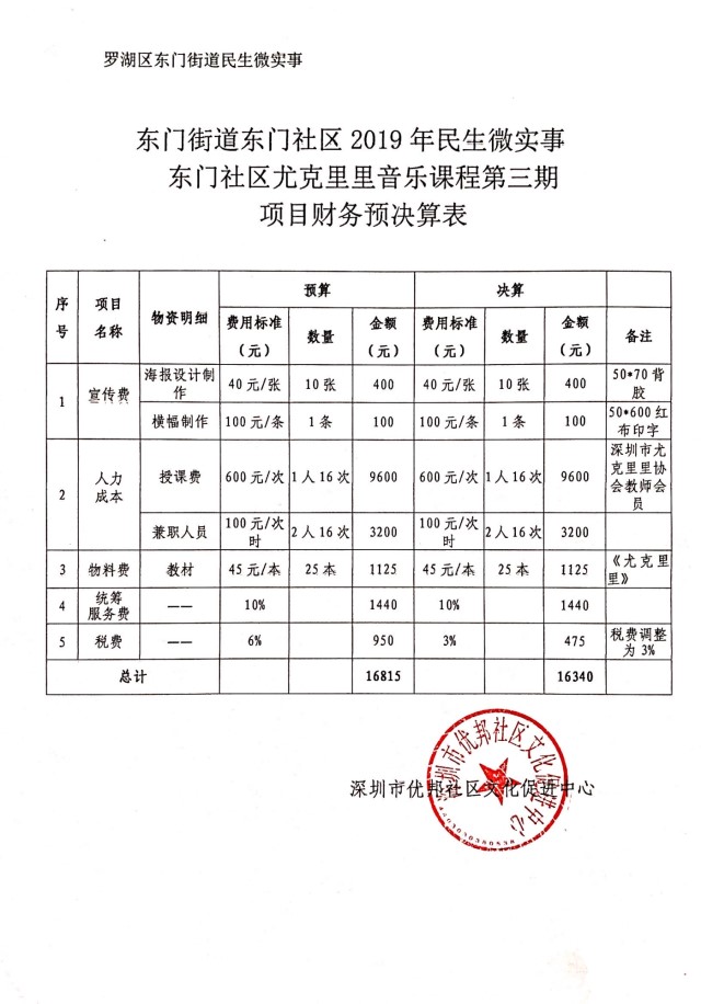 【公示】东门社区尤克里里音乐课程第三期财务公示