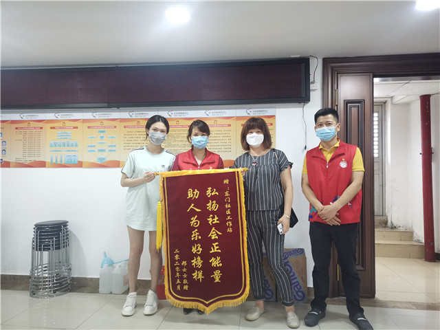 东门社区收到居民送来一面“弘扬社会正能量,助人为乐好榜样”的锦旗,感谢社区的关心和帮助。