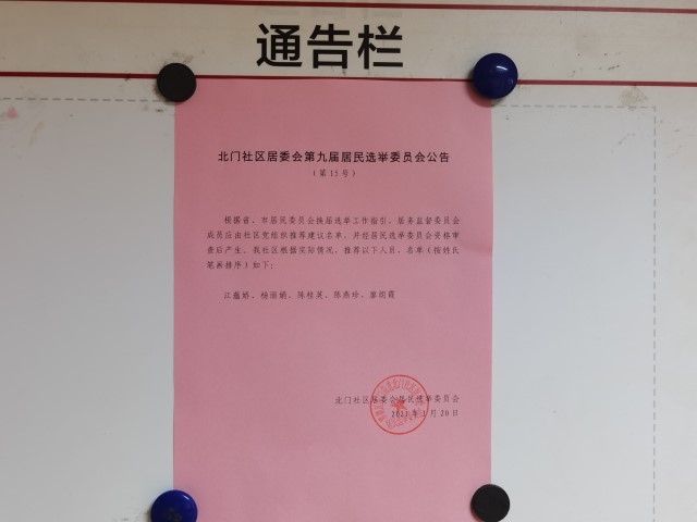 北门社区居委会第九届居民选举委员会公告(第15号)