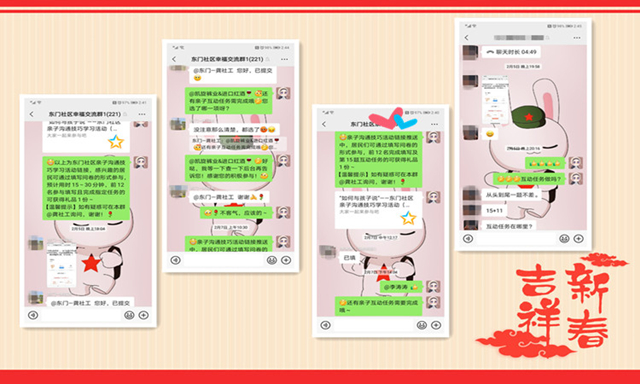 罗湖家园网讯:为响应深圳市政府“留深过大年”的号召,进一步营造家庭和谐氛围,2021年2月5日至9日期间,东门社区党群服务中心在社区居民交流群上开展亲子沟通技巧线上活动,为社区居民提供学习平台,增进他们对相关知识的了解,协助提升亲子沟通能力。