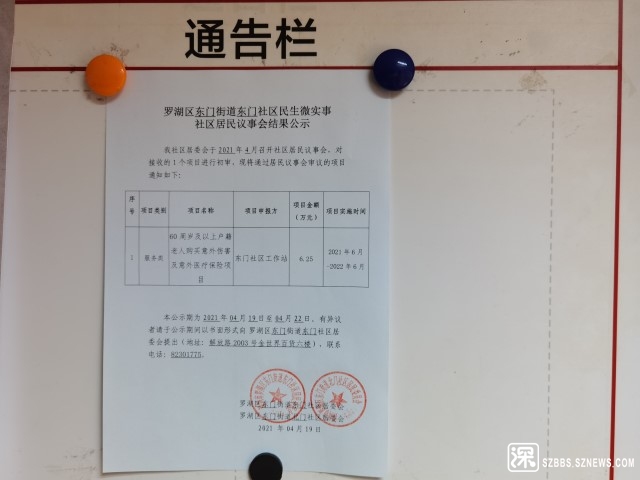 本公示期为2021年04月19日至04月22日。有异议者请于公示期间以书面形式向罗湖区东门街道东门社区居委会提出(地址:解放路2003号金世界百货六楼),联系电话:82301775。