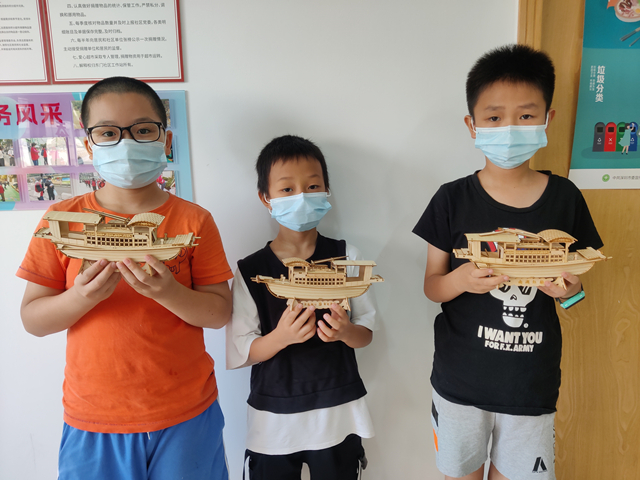 课堂上,社工通过讲解红色历史,引出红船背后的故事,从而增长了孩子们的党史知识。孩子们在社工的引导和帮助下,仔细观察制作说明,小心谨慎的认真核对每一个零件,现场氛围紧张而欢快。孩子们拿着自己的成品,成就感满满的向社工、周围同学展示,这份成就感不仅是获得了社工的鼓励还得到了其他同学的点赞。