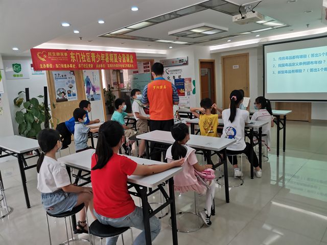 罗湖家园网讯:为全面加强社区青少年禁毒教育、引导青少年认识毒品危害、教育其自觉远离毒品,东门社区暑期夏令营课堂开展了以“认识毒品”为主题的系列保护科普小课堂。本次课堂邀请了东门街道禁毒工作人员为13位青少年普及毒品相关知识。