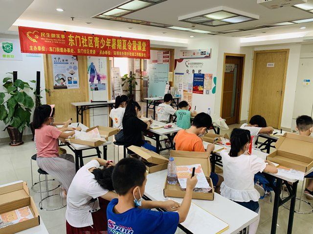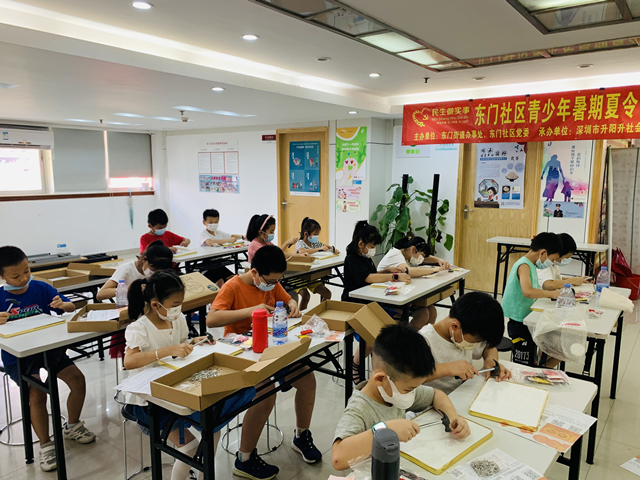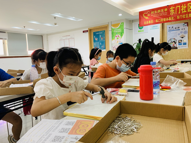 罗湖家园网讯:为进一步提升社区青少年的动手动脑能力,培养孩子们的专注力,东门社区暑期夏令营课堂--趣味手工课第六节制作钉子画于8月23日下午开展,本次课堂迎来了15名社区青少年。