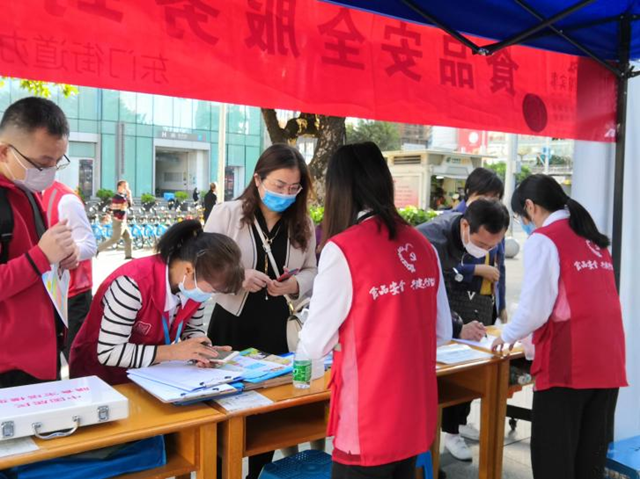 活动现场,工作人员为居民派发食品安全相关宣传手册,可供居民日后翻阅,使活动成效最大化。