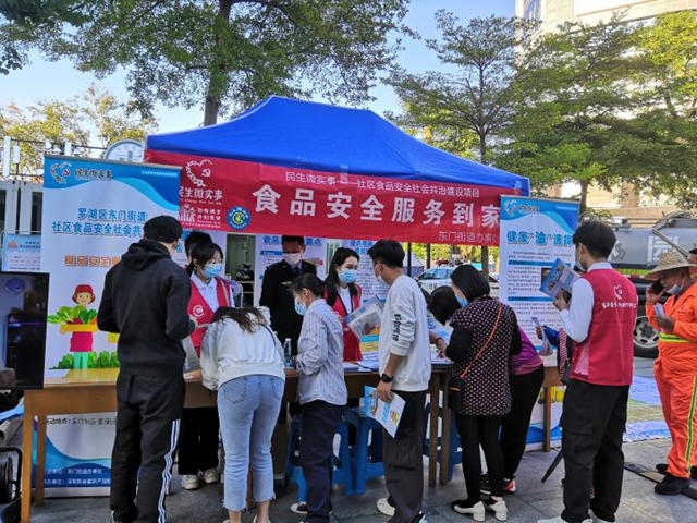罗湖家园网讯:为提高社区居民食品安全意识、增长膳食营养知识,营造浓厚的食品安全社会共治氛围,2021年11月10日下午,东门街道办联合东门社区工作站、东门党群服务中心开展东门街道社区食品安全社会共治建设民生微实事项目——“食品安全服务到家”活动。