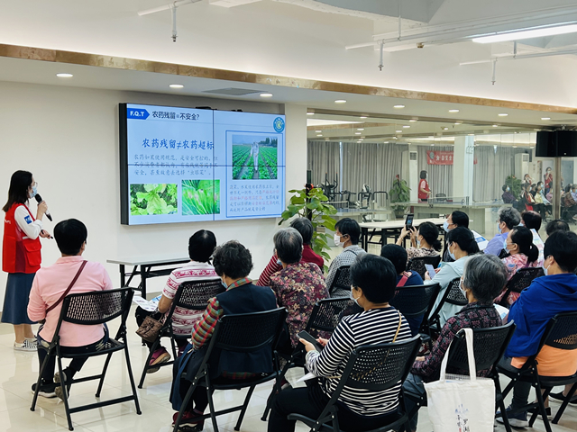 本次活动主题为“健康膳食、安全为先”,从身边常见的食品安全问题作为引入点,为社区居民讲解食品安全相关知识。如食源性疾病(食物中毒)的概念、农药残留、兽药残留及非法添加物对人体的危害、膳食营养搭配等内容,并介绍一般性食品安全事件处置流程及家庭出现食品安全问题的应急处置办法。