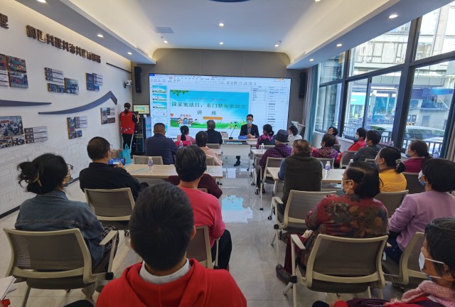 此次活动以“讲座+外展”的形式开展,现场居民热情参与!首先在东门社区党群中心举办讲座,由资深法律讲师主讲,围绕宪法、禁毒相关法律法规等内容展开。老师结合案例,将看似干巴巴的法律条文,深入浅出、绘声绘色地展现给社区居民,他们听得认真、学得也轻松!