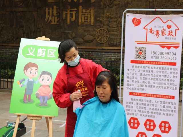 义剪现场也热闹非凡,在志愿者们的精湛手艺下,伴随着剪刀咔嚓作响,短短2个小时,就有13位居民换了新发型新形象。林叔叔开心地说“活动体验很好,剪完头发感觉人更干净清爽了。”