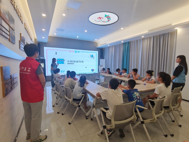 活动伊始,授课老师以宇宙星球为主题引入科学知识,引领孩子们进入科学的奇妙世界,向大家讲授宇宙的相关知识,科普什么是宇宙、星球悬浮的奥秘以及日地月之间的位置与关系。孩子们在课堂上发问不断,对“星球悬浮”展现出了强烈的好奇心,课堂互动频频,科学氛围浓厚。