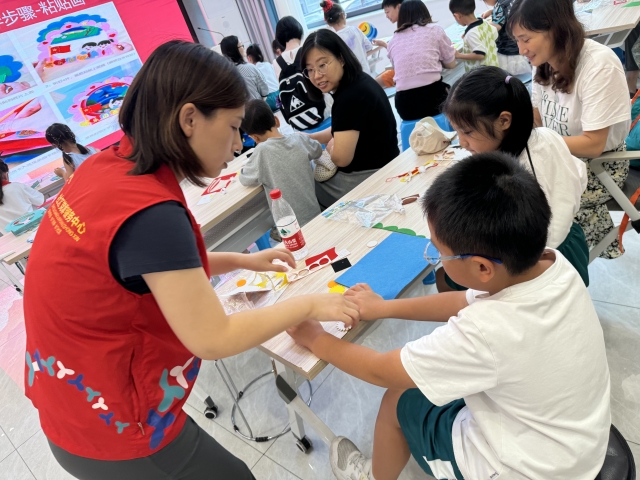 罗湖家园网讯:7月28日,东门社区党委、东门社区新时代文明实践站联合深圳市温馨社工服务中心在东门红色记忆馆开展了一场别开生面的“画贴红韵,亲子同心”贴画手工活动,该活动共吸引20对亲子家庭报名参加。