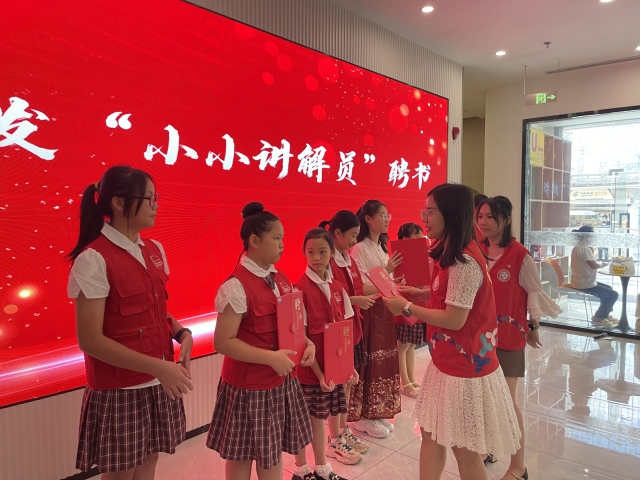 活动的高潮当属颁发聘书和“文化传承者”奖牌环节。经过严格评选,最终有 10 名表现优异的小小讲解员获得聘书,他们将有机会正式为游客讲解红色记忆馆的内容。同时,所有参与活动的小朋友都获得了“文化传承者”奖牌,以表彰他们在传承红色文化方面所做出的努力