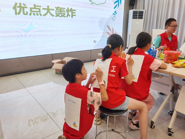 小组终期,社工通过组织志愿服务知识竞答环节,协助学生志愿者巩固培训所学的服务知识及技能,同时,还开展了“优点大轰炸”活动,引导组员间相互夸赞对方,增强了团队的凝聚力和彼此的认同感。