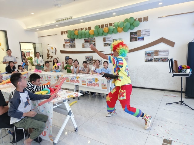 活动伊始,新疆来深交流干部为亲子家庭带来一支充满异域风情的舞蹈--《美丽新疆》,那热情奔放的舞步,瞬间将现场气氛点燃。舞蹈结束后,干部还与亲子们展开了有趣的互动,互学彼此的语言,让大家感受到了不同民族文化碰撞所产生的奇妙火花。随后,小丑表演者为亲子们带来了精彩绝伦的魔术表演,五颜六色的气球在他的手中仿佛被赋予了生命,眨眼间就变成了可爱的造型,引得孩子们阵阵欢呼。他滑稽的动作和丰富的表情更是让现场充满了欢声笑语,家长们也被这欢乐的氛围所感染,纷纷绽放出灿烂的笑容。