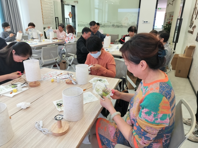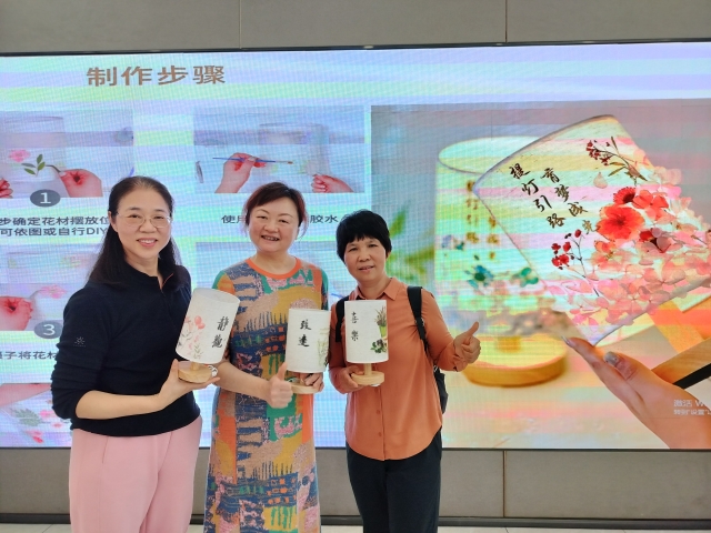 “笔墨生花,灯影传情” 东门社区书法班压花台灯 DIY