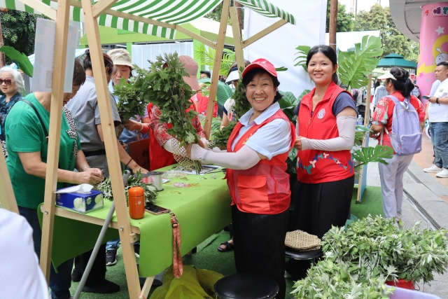 传统节日摊位区域充满了创意与欢乐。艾草花艺手工展位上,居民们亲手制作艾草花束。“端午插艾是祖辈传下来的习俗,自己动手做更有意义。”正在整理花束的王阿姨笑着说;五彩编绳手工展位前,大家发挥创意DIY出色彩斑斓、寓意吉祥的绳结;书法挥墨手工展位,东门书法班老师携手学员一起挥毫泼墨,为普通袋子赋予了独特的古风韵味。