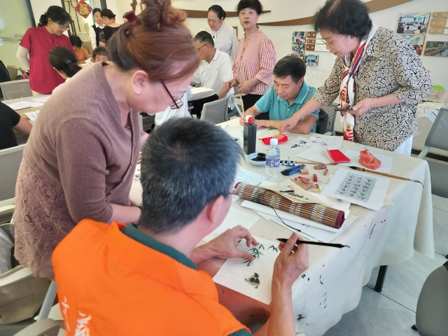 罗湖家园网讯:为推进廉洁家风文化建设,丰富老年群体精神文化生活。近日,东门社区党委、东门社区新时代文明实践站联合深圳市东西方社工服务中心,携手邮政文联、华兴银行罗湖支行开展“翰墨丹青·框韵雅集”社区老人书法班活动。
