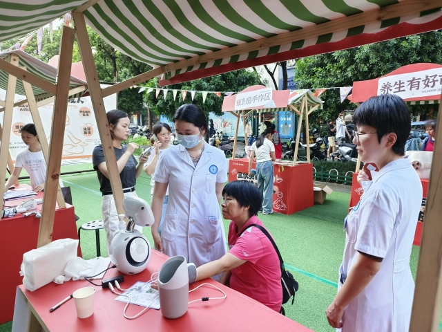 7月26日下午,“健康守护市集”接力开启,活动聚焦妇幼健康与肝炎知识普及,深圳市妇幼保健院资深专家团队现场坐诊,为居民送上“健康安心包”。妇科、中医科专家为居民提供免费咨询问诊和中医理疗服务,从日常护理要点到常见疾病预防方法,全方位覆盖居民健康需求,让大家在家门口就能享受到专业医疗指导。“在家门口就能看专家号,省时省心!”刚体验完理疗服务的李女士由衷称赞。现场同步发放健康科普手册,大力倡导“预防为主”的科学理念。